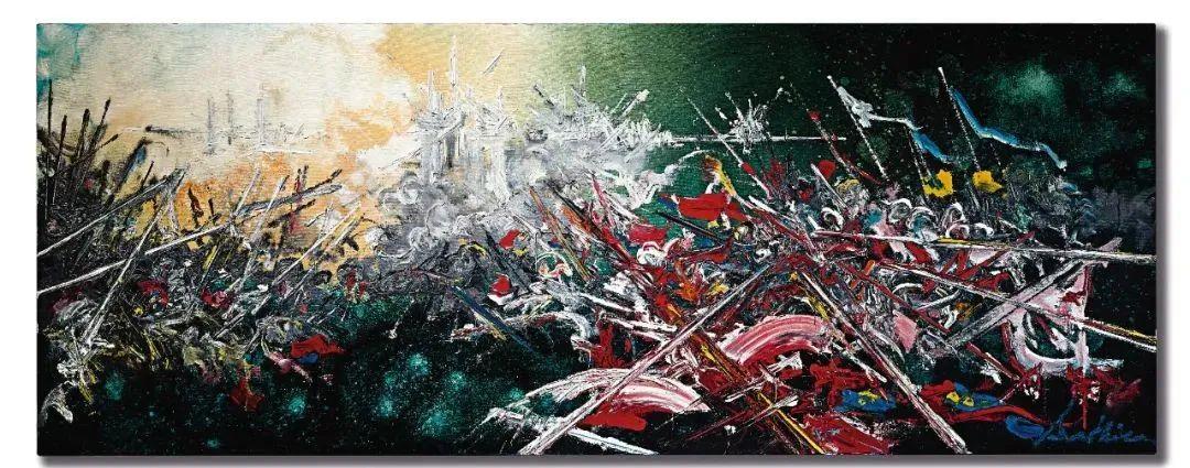 乔治马修《圣女贞德解放奥尔良》,油画画布,一九八二年作,50 x 129.5 公分。2020年7月8日香港苏富比现代艺术晚拍以4,125,000 港币成交。