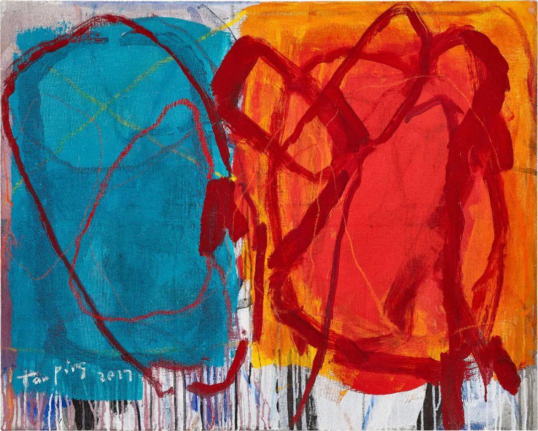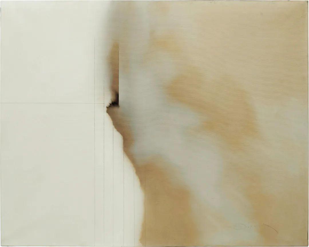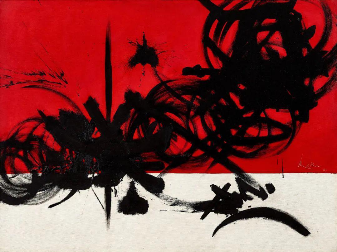 作品背景令观者想起马克罗斯科(Mark Rothko)的对后世影响深远的色域作品,而前景的姿态绘画风格与杰克森波拉克(Jackson Pollock)的行动绘画遥遥呼应。《俯仰今昔》曾展于1985年教皇宫的乔治·马修大型展览,该展图录将随本作赠予买家,以存纪念。