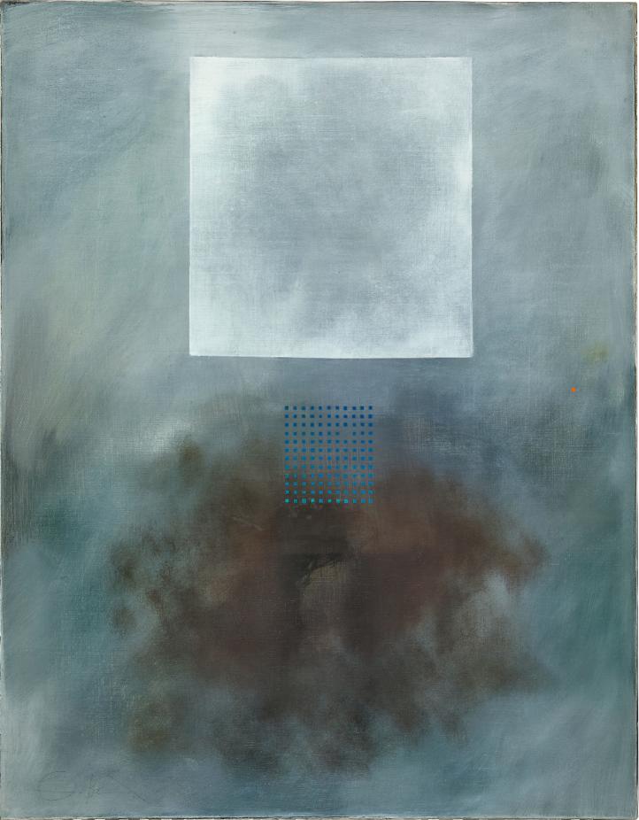 费南度索培尔(Fernando Zobel)的作品注重光影、色彩与精神意义之间的调和,提炼抒情抽象的精粹,以求真为旨。充满诗意及冥想意味的《无题》展现了索培尔备受推崇的抽象视觉语汇,艺术市场上尺寸如此般庞大的索培尔作品甚为少见。索培尔罕有地以直幅创作《无题》,并运用了冷酷而克制的色调,在美丽的蓝色背景上谨慎布局,让轻灵简约的图形悬浮于空中。经过数年来以黑白色调创作后,索培尔在在踏入1963年之际再次生起以色彩创作的意欲。这段时期的索培尔作品以温暖的灰褐色及赭色为主,而本作则运用此时期较少见的蓝白色调,营造出意境广阔而近乎灵性的视觉体验。