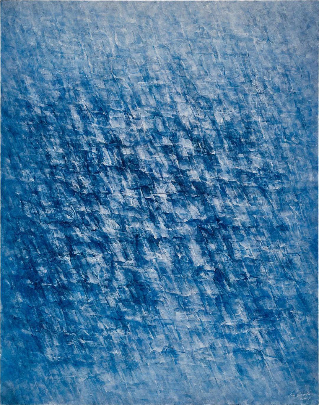 谢景兰以艺术家的身份涉足多个领域,澎湃的创意让她在二十世纪的华人艺术名家之间大放异彩。她的创作融汇了音乐、舞蹈与绘画,三者共蕴相生,衍生出一套富有表现力、且能引起普世共鸣的艺术语汇,至今依然追慕者众。本次上拍的画作宽广优美,海浪般绵延起伏的动态笔触让观者沉浸其中。七〇年代,谢景兰多次回国,作品亦因而出现了全新的并融风格,不但濡养出南宋水墨的内省心境,还糅合了在西方如日中天的抒情抽象概念。本作构图有如一张山水横幅,深邃与清浅的蓝色如行云流水般缠绵交织,丝丝缕缕的灰色与赭色线条跃动着勾勒出撩拨心弦的轮廓。不同于七〇年代淡静素雅的构图,本作里的各种元素热闹地舒张开来,丰富多姿。
