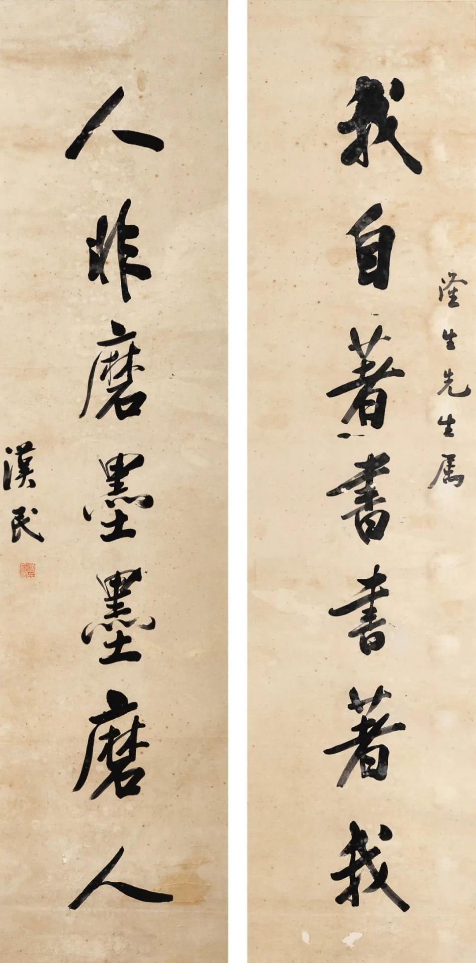 款识:我自着书书着我,人非磨墨墨磨人。隆生先生属。汉民。