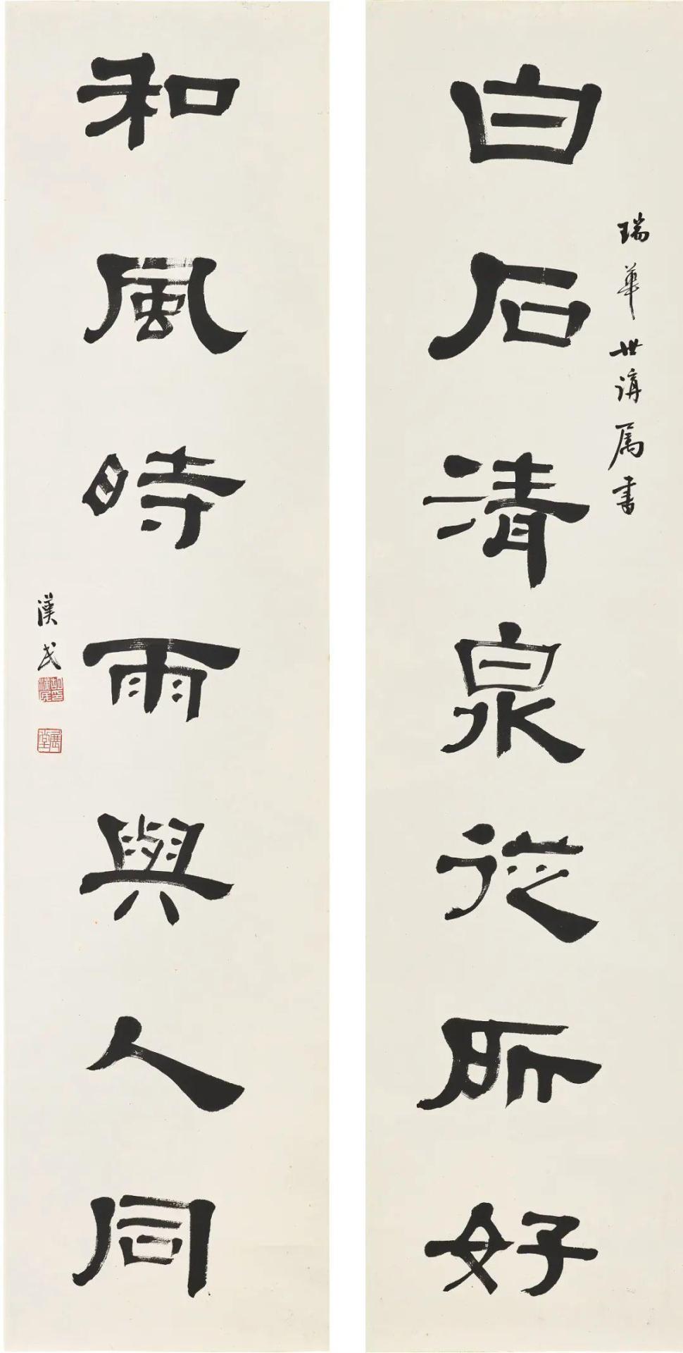 款识:白石清泉从所好,和风时雨与人同。瑞华世讲属书。汉民。