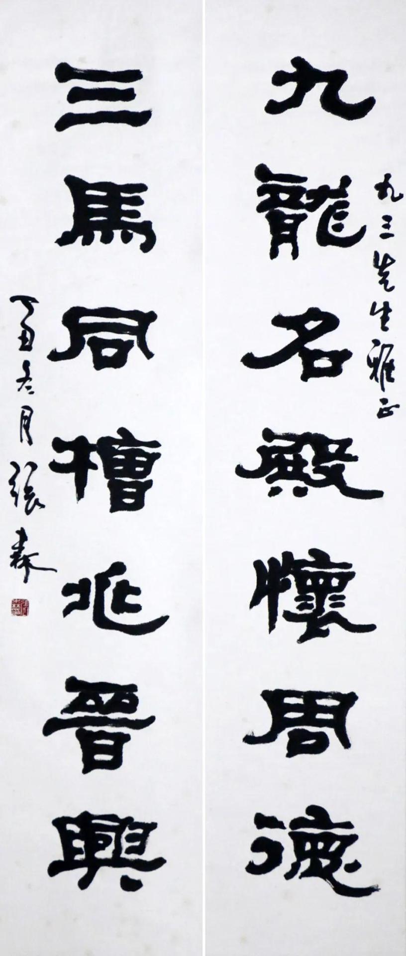 张森 隶书七言联 116×26 纸本 对联