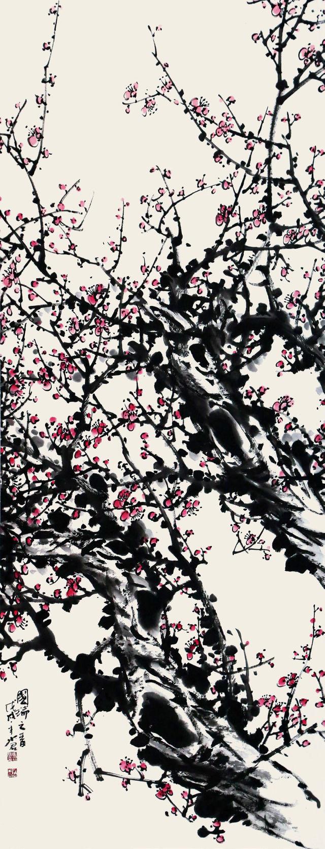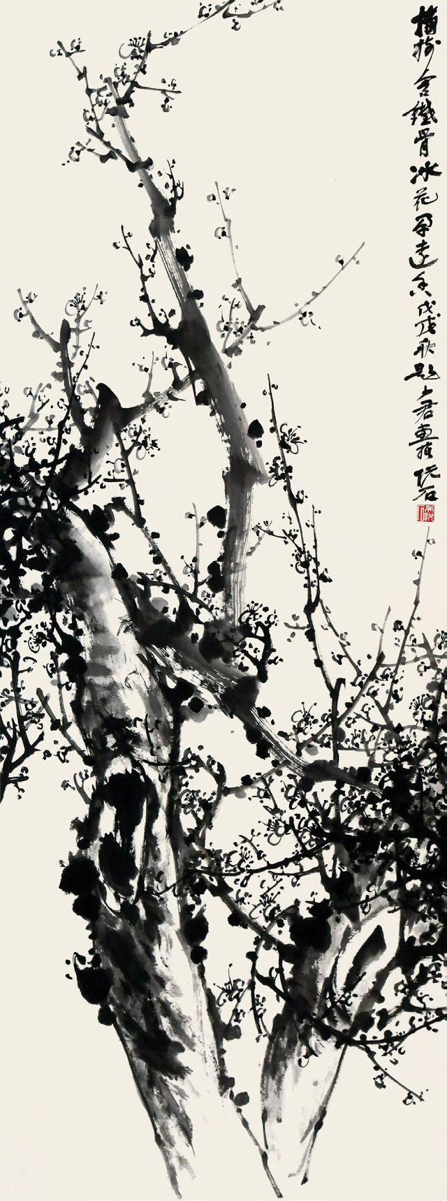 马少君早年习画,颇有心得,尤其近年从吴悦石先生问学后,更见长足进步。不仅仅是笔墨经营的变化,而是一种基于对文人画的根本认同与体悟,应该是一种“革命性”的转捩。在吴悦石先生那里,绘画已不仅仅是一种客观的再现,乃至于对事物的状括,而是在外物启示下的一种心灵体验,进而又以纯化后的笔墨而生发于毫楮之间。于是,画面上生发出的花花草草、枝枝叶叶便已经超越了物理而进入到了一种精神的层次了。对此,马少君的体会则更加突出。他写松竹梅,纯以水墨氤氲而出,且用笔生拙刚狠,气息绵长,以情带笔,所到之处莽莽苍苍,仿佛夹风携雨,这的确是纸上经营的真本事。