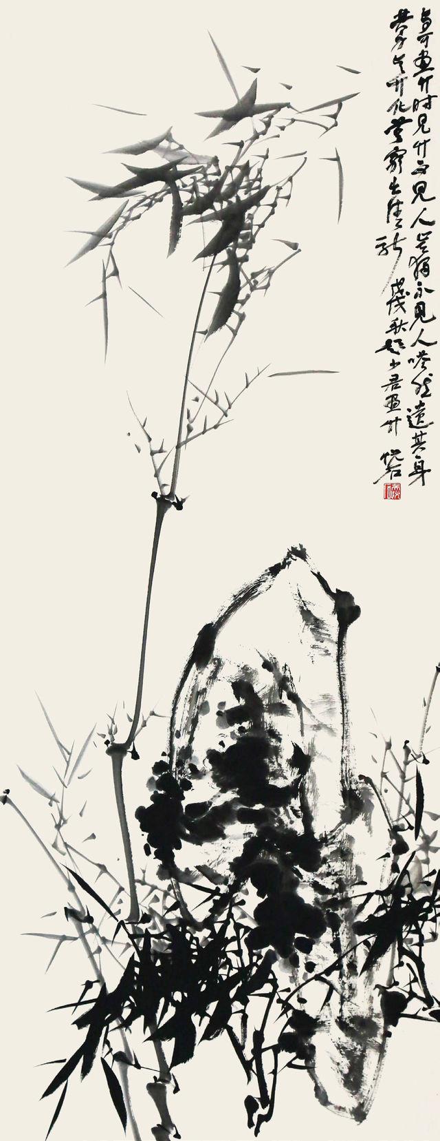 马少君之墨竹,有自己独特的风格:刚直不阿、疾风劲节。他所画的竹枝,望去有动影,听其似有声,竹枝凌秀,枝节挺拔,如见真竹,胜似真竹。可能是人品使然。因为竹能喻人,高风亮节,具有君子风度。苏东坡曾赞文与可画竹“其身与竹化,无穷出清新”。之所以能呈现出无穷的清新境界,就在于“其身与竹化”了,竹也人格化了。历来的画竹高手都是如此,不拘于模拟自然,而在于拟人化,追求人与竹化,达到天人合一的境界,少君已悟出了画竹即是画人、画境界,在追求一种文学的诗性形态。我们祝愿少君的艺术追求向美学更高境界提升。