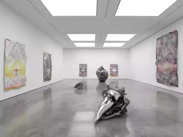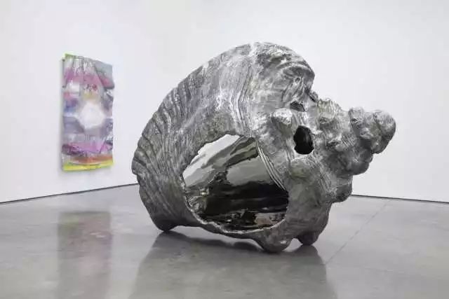 在他的这一组作品中,我们还可以看到一些大型的雕塑作品:一些被侵蚀的贝壳雕塑,或是被冰冻住的大海波浪。