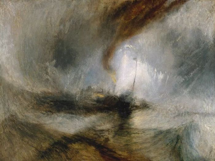 在18世纪的艺术历史中,描述神话与宗教故事的历史画是画坛上的绝对主流,而记录和描述大自然景象的风景作品其实并不受人重视,在艺术地位上远低于历史画。但是,在透纳的笔下,人们看到代表人类文明的大船可以在充满阳光、风暴、大雨和雾霾的海上航行,而海洋可以从各种颜色、各种天气、各种形态出现,气质上流露出如古老神迹一般的壮美景象。这种自然力量和人文力量的共存,和挥之不去的对抗性充满了戏剧的张力。因此,透纳的风景画,以描绘大海的壮丽景色为例,展现出了前人不曾有过的技法、胆识与渲染力,因而闻名世界。
