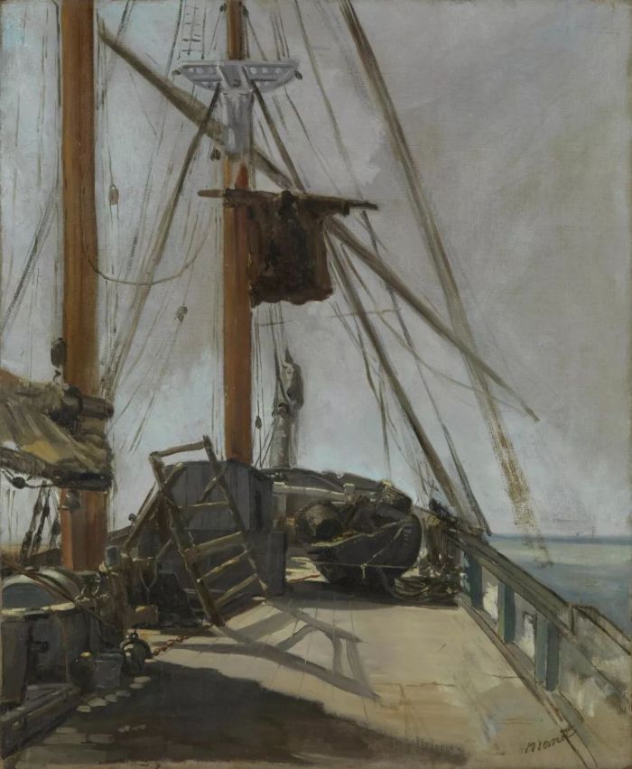 于是,他曾与其他年轻的海军候选人一起,在法国和巴西之间航海旅行,在一艘小型帆船上度过了大约四个月的时间。但是,最终他还是在海军考试中不及格,不过却在艺术史上获得第一;一年之后,他终于放弃了海军梦,去巴黎老老实实学习了艺术。不过尽管如此,马奈毕竟拥有过短暂的海洋生活经历,而他一直以来怀抱的海军之梦也最终实现在了画作之中。