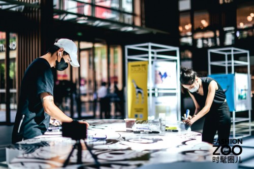 8月4日下午FASHION ZOO「有理有据」艺术特展正式拉开帷幕。新锐视觉艺术家@skesen森,ADC、The Young Ones插画类金奖获得者JANE LIU 刘祉君,原创设计师林氏柚等青年艺术家们现场进行“长桌创作”,在超大长桌上大秀涂鸦创意。