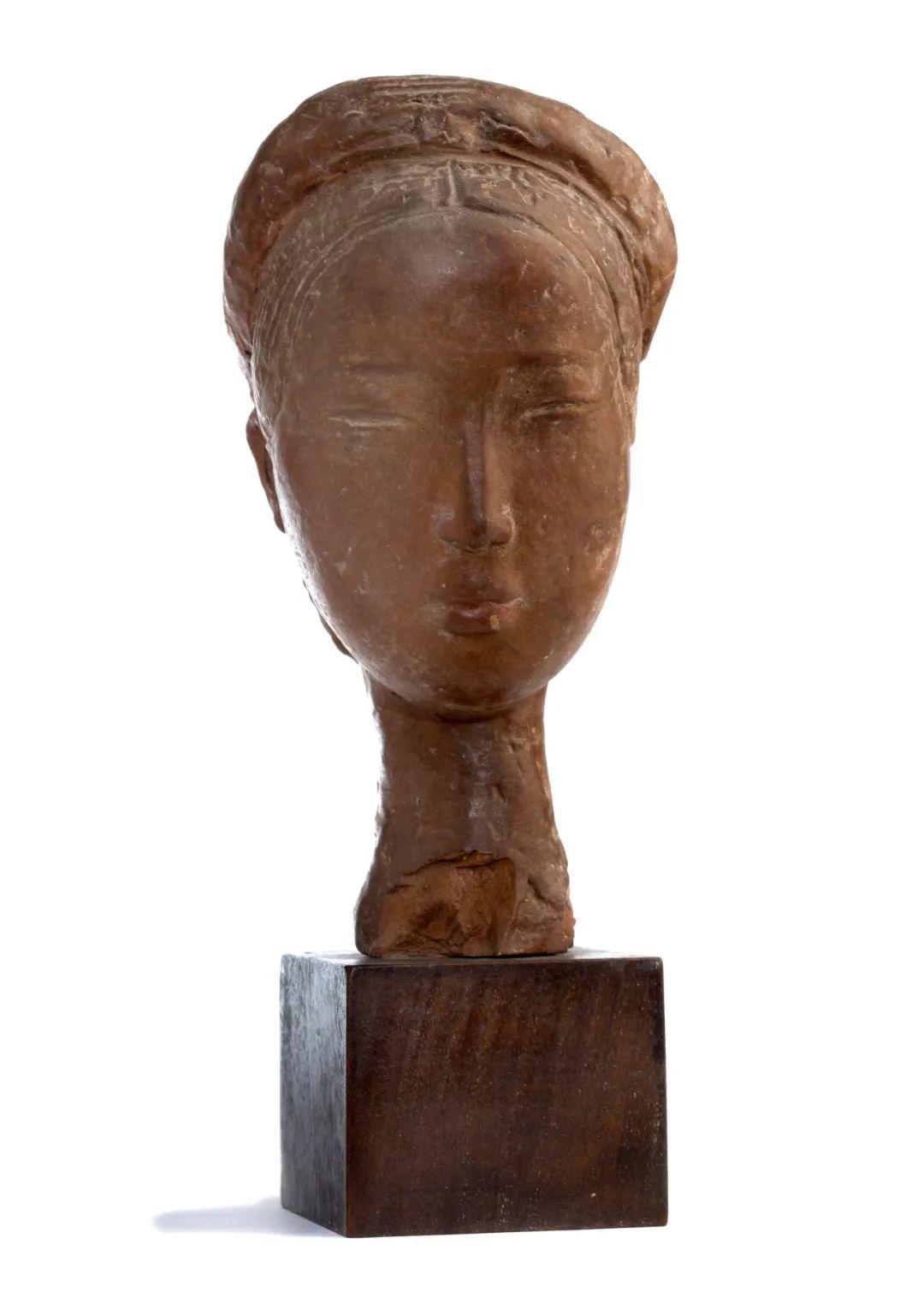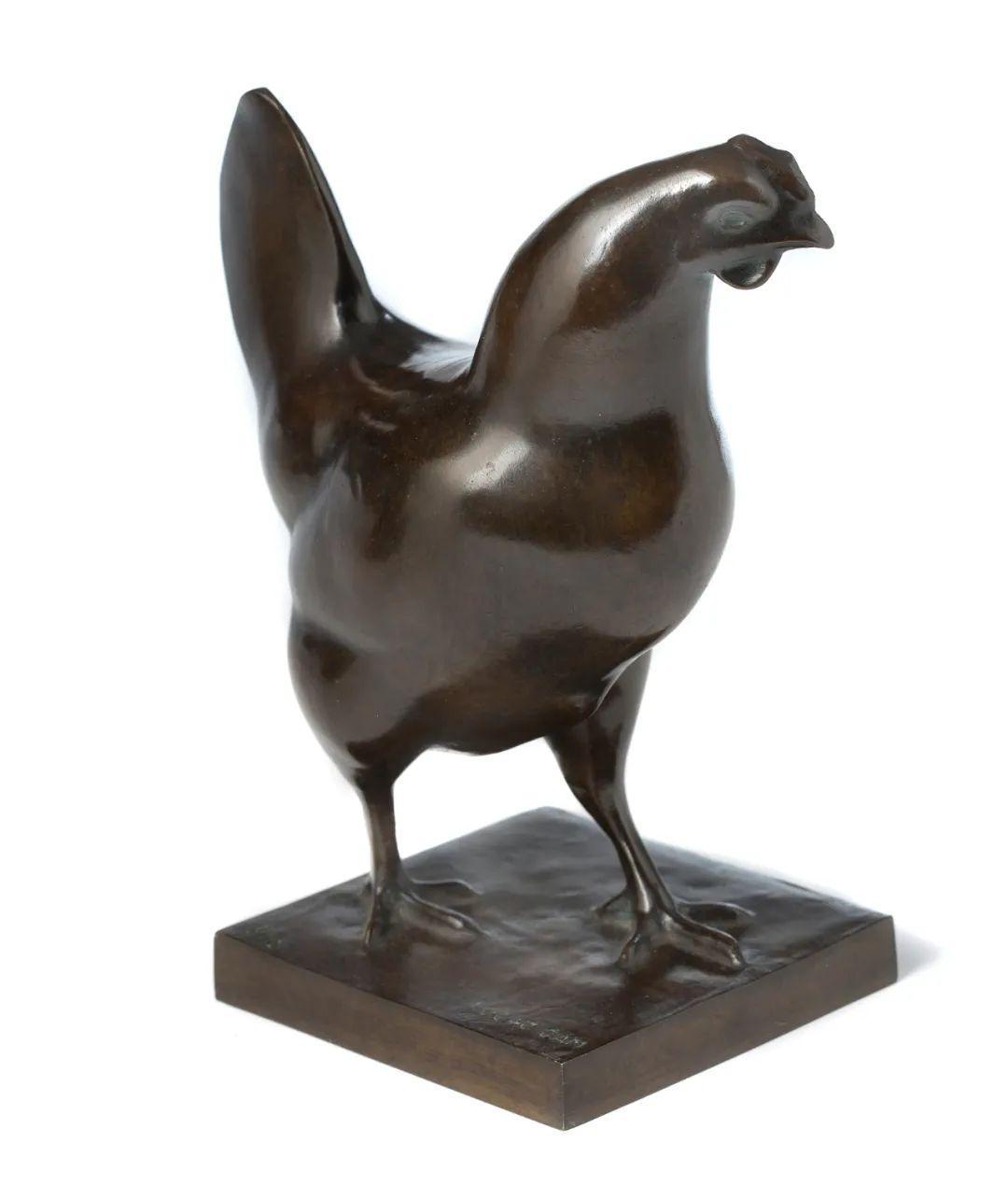 本次拍卖可见三件青铜雕塑、一件陶器雕塑,正好展露了武高谈的艺术才华。作品题材多样,既有女性头像,也有母鸡等动物造型。