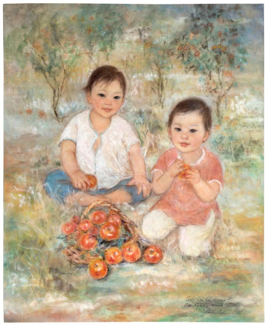 至于黎氏秋Lê Th Lu,是少数能考入河内美术学院,并成为专业画家的女性。她作品最明显的特点是温和,偏爱母性和儿童主题。 《花园里的孩子》和《房间里哺乳的母亲》都显示出这种精致与细腻。