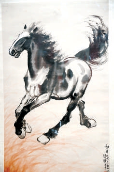 一踏进一层中央展厅,观众就会发现被20世纪中国美术名家的作品环绕:齐白石《樱桃》、徐悲鸿《奔马》、黄宾虹《棲霞山居》、傅抱石《待细把江山图画》、林风眠《秋》……这些代表作诠释着他们的艺术风格,成为广为流传的美术经典。“黄土画派”开创者刘文西成名作《祖孙四代》以四代人的群像展现出岁月沧桑和时代的变化。吴冠中的《太湖鹅群》记录了天光湖色之间嬉戏喧闹的鹅群,画面上绿色、浅黄色的块面与白团和红点的聚散,给人以抽象的形式美感。