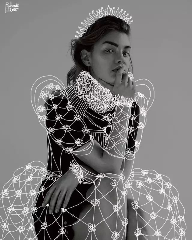 Ilias Walchshofer是一位来自奥地利的摩洛哥人,绰号Dr. Propolus,他为对许多时尚杂志上的模特照片进行了二次创作,用纤细明快的黑白线条在照片上涂鸦,赋予了照片新的主题以及人物新的性格特征,犹如让人物穿上了神仙的衣服。