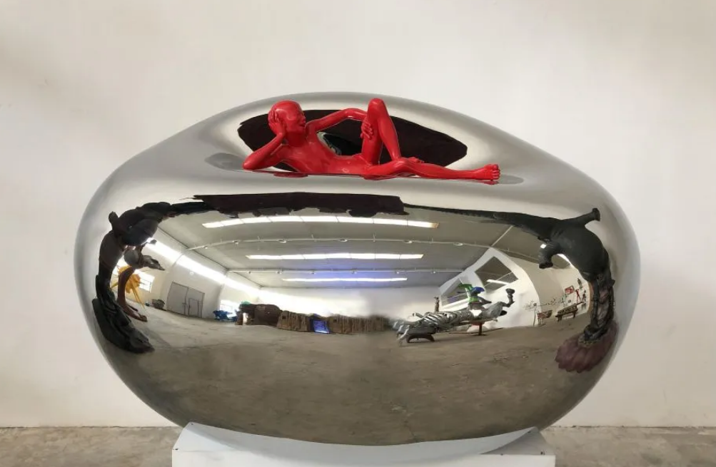 雕塑家陈文令将红孩儿与镜子一般的不锈钢融合,把传统中国哲学与人、自然、社会的关系巧妙植入作品创作理念中,那些看起来坦率、天真的作品,如同一面“灵魂之镜”,直面自我的最深处。