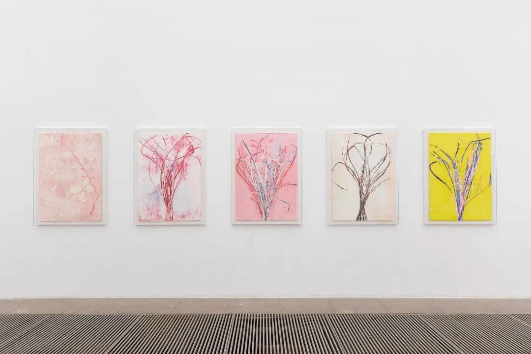 自左至右 :艺术家 :刘真辰 PANACEA 189 药用植物和矿物、油彩、纯棉无酸纸 76.5x108cm 2021 ;艺术家 :刘真辰 PANACEA 187 药用植物和矿物、油彩、纯棉无酸纸 76.5x108cm 2021 ;艺术家 :刘真辰PANACEA 193 药用植物和矿物、油彩、纯棉无酸纸 76.5x108cm 2021 ;艺术家 :刘真辰 PANACEA 186 药用植物和矿物、油彩、纯棉无酸纸76.5x108cm 2021 ;艺术家 :刘真辰 PANACEA 192 药用植物和矿物、油彩、纯棉无酸纸76.5x108cm 2021