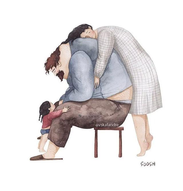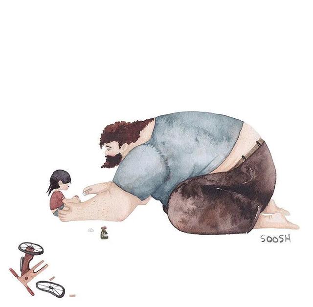 通常,当我们讨论亲情时,首先想到的往往是慈母般的柔情。谈到父爱,却似乎总是哽在喉中,想说些什么却好似总也说不出来。 一直以来,父爱在我们眼中都是粗糙的,沉默的,厚重的、深沉的!然而其实,父爱也可以是很细腻的,温暖的。 青年画家Snezhana Soosh在她的ins上用最细腻的方式描绘了她眼中特别又温暖的父爱,给我们展现了不一样的贴心的、细心的、温暖的父亲,相信你一定会被它们迷住的,让我们一起来看看吧!