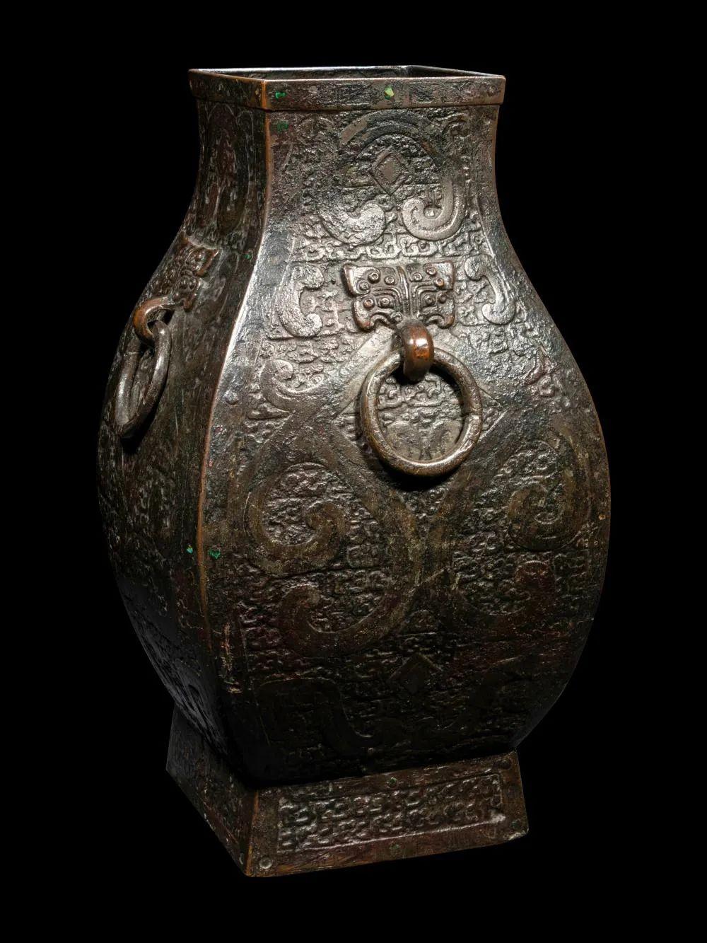 No.345 明 仿古铜铺首活环耳夔龙纹方壶