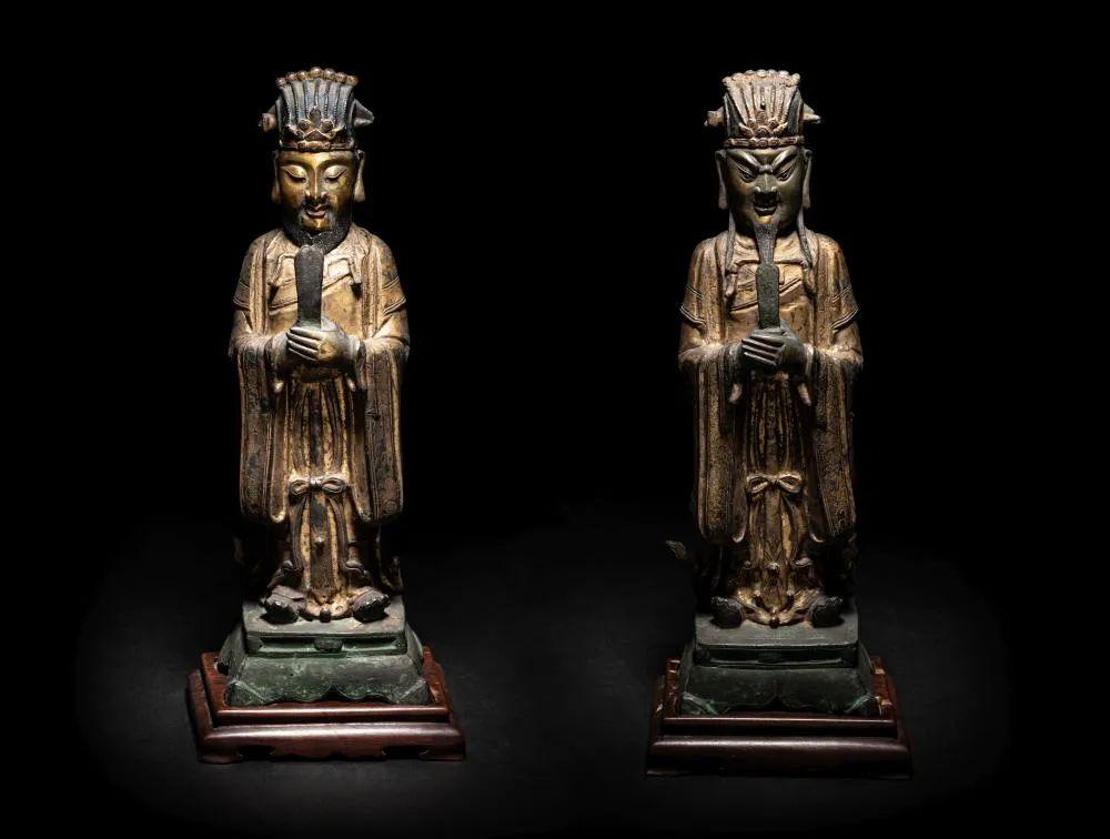 No.350 17世纪明晚期銅漆金文官像一對