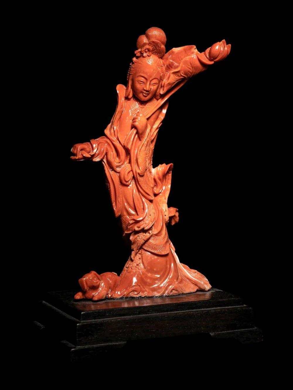 No.386 晚清/民国 红珊瑚雕仕女戏犬