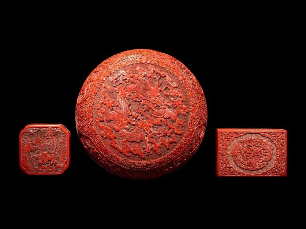No.372 晚清-民国 剔红漆盒三件