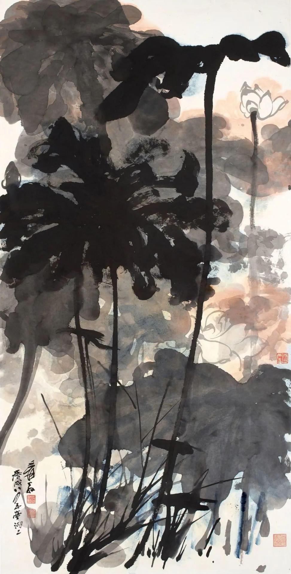 近现代名家书画部份,包括林风眠精品数帧,亦具傅抱石山水佳构,笔墨苍润,布局巧妙,乃上世纪六十年代画家写赠著名戏剧家熊式一。而张大千六呎风荷巨制,白莲素净,枝叶飘扬招展,笔墨纵放淋漓,为一九七一年香港大会堂〈张大千书画展〉展品之一。此外,范曾写人物一帧,乃直接写赠邵逸夫爵士,足志艺缘。