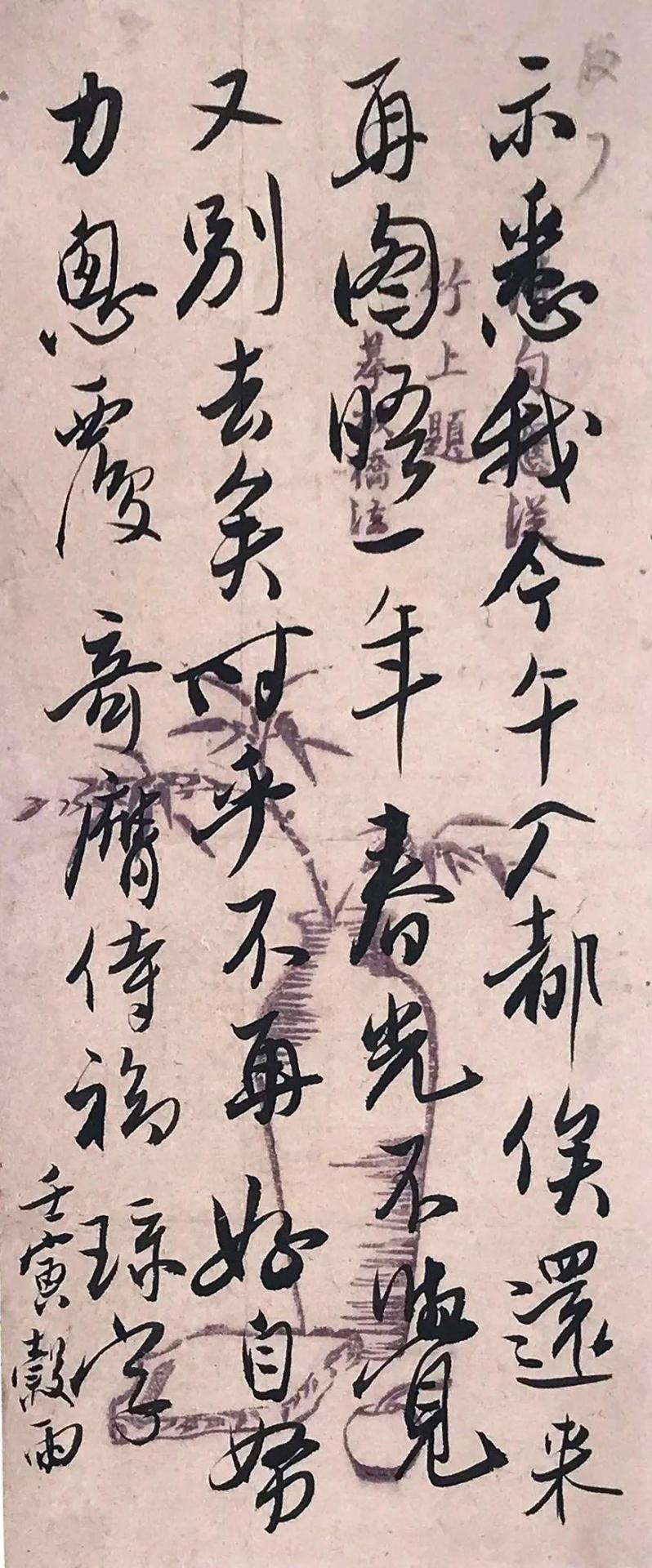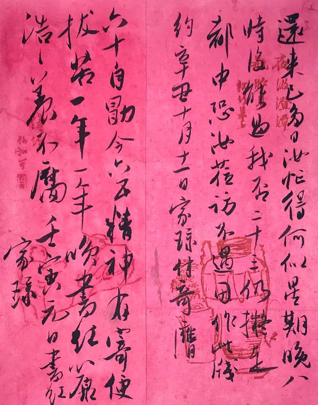 题识:1.辛丑十月十一日家琭付奇膺。2.壬寅元日书红,家琭。