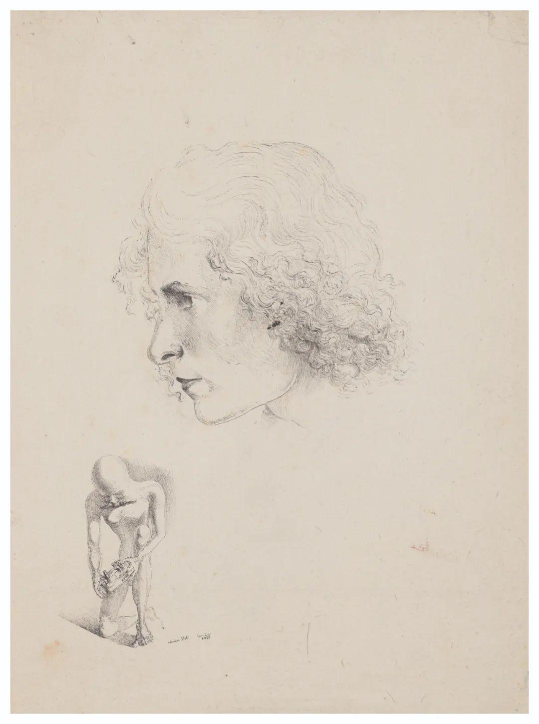 萨尔瓦多达利 (1904-1989)《〈圆锥变体到来之前的加拉与米勒的晚祷〉的加拉习作》
