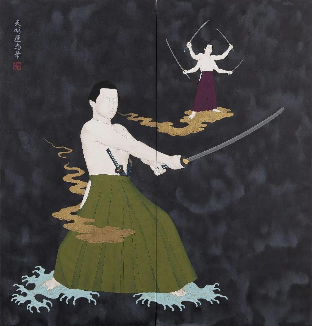 天明屋尚(Hisashi Tenmyouya)的作品充份呈现天明屋尚跨越古今的传统与当代艺术对话,表现日本美学中「奢华」、「破格」、「霸气」的本质,他在2001年提出「新日本画」的概念,对抗权威主义横行的日本美术体制。2009年开始倡导华美、破格的BASARA美学。
