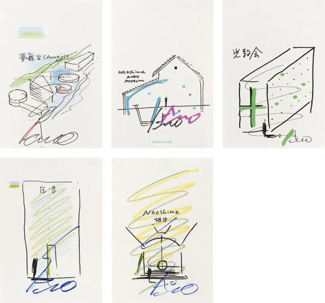 Lot 1 547 安藤忠雄〈速写五枚〉