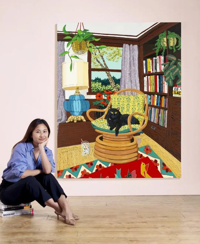 美国艺术家希拉里·佩西斯(Hilary Pecis)这幅以鲜活色彩呈现亲密温馨的室内景象的《大男孩》(Big Boy)让我惊艳于她纪念日常之美的能力。两年多以来,和整个世界一同困居于家中的我,往往会忽略身边之美。从一个艺术爱好者的梦想书架到悬挂着的葱郁植物,再地板上的夏日饮料和躺椅上慵懒的猫咪……佩西斯是捕捉生活中那些无处不在的细微乐趣的大师。我几乎是立刻沉浸在她创作的世界中,被她笔下如同野兽派所热爱的明亮的色彩、由马蒂斯所启发的对家内环境的描摹所深深吸引。佩西斯用明艳而充满生机的画笔,向人们展现了一幅美好日常生活的画像,也为我们创造出一个动人的画中避风港。— 方文迪