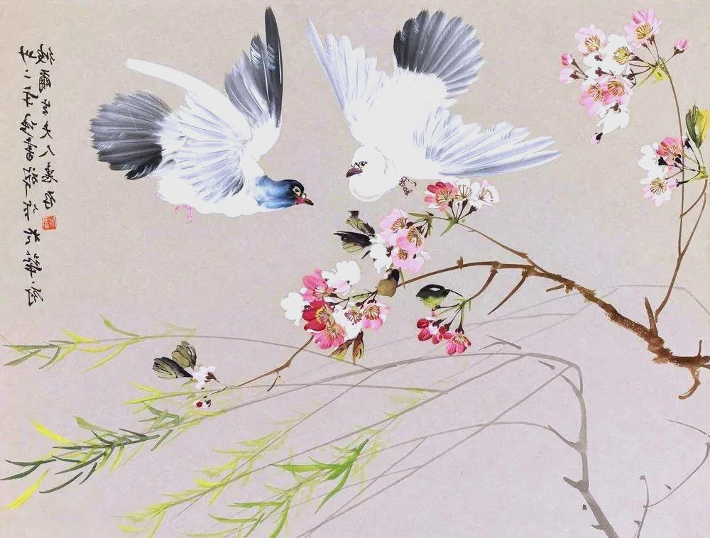 作者简介:张书旂(1900-1957),原名世忠,号南京晓庄、七炉居。浙江浦江人。曾任南京中央大学教授,抗战期间去美国创办画院,讲学作画,后定居旧金山。张书旂勤于写生,工于设色,画风浓丽秀雅,别具一格,与徐悲鸿、柳子谷三人被称为画坛的“金陵三杰”。其作品曾被美国总统收藏。其取法于任伯年,作花鸟喜用白粉调和色墨,画面典雅明丽,颇具现代感。又得高剑父与吕凤子亲授,形成色、粉与笔墨兼施的清新流丽画风而独标一格。