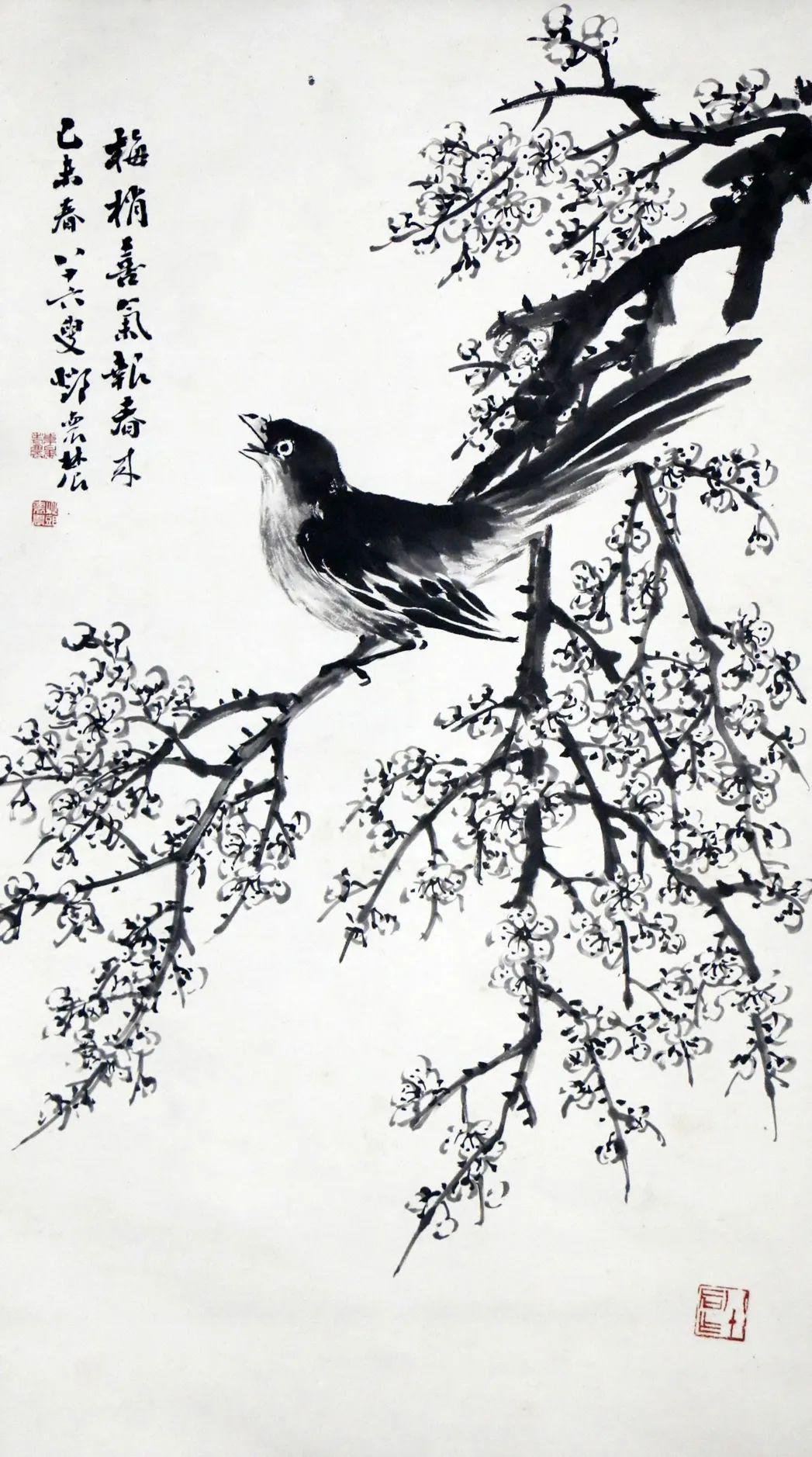 邓怀农 梅雀 71×40 设色纸本 立轴