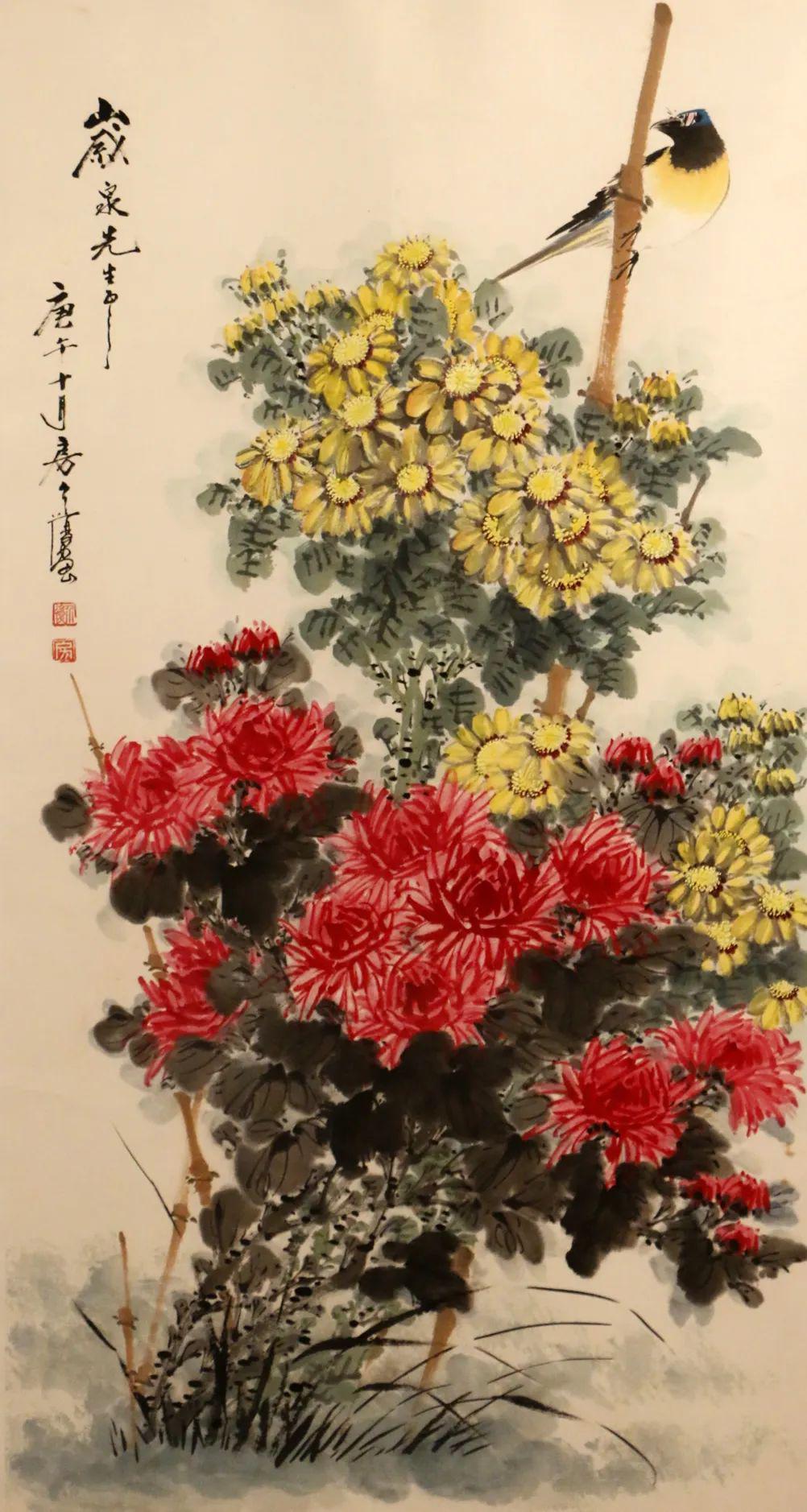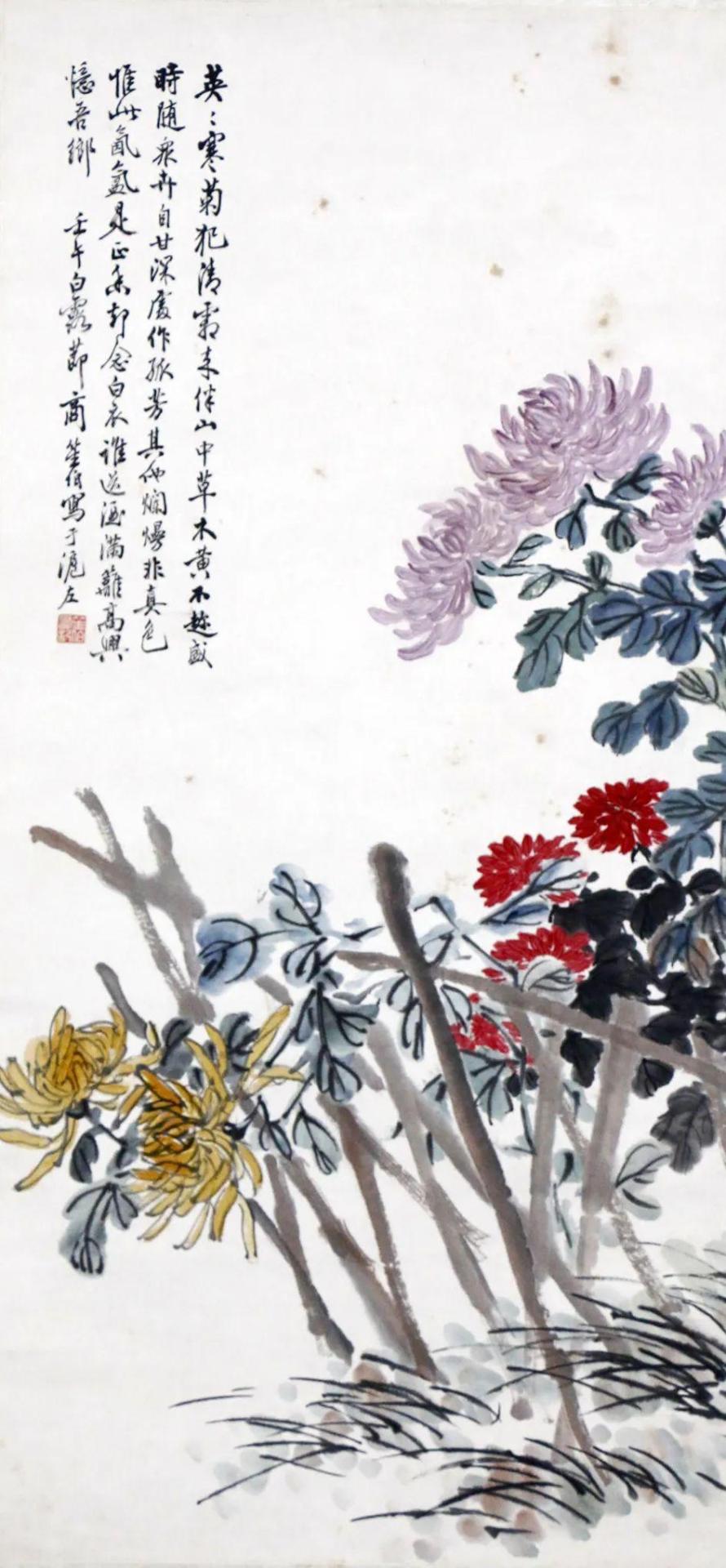 房介复 彩菊图 91×48.5 设色纸本 镜框