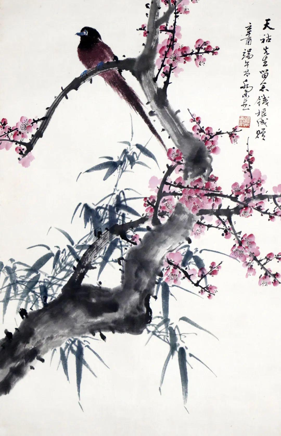 乔木 双清翠鸟 68×44 设色纸本 镜片