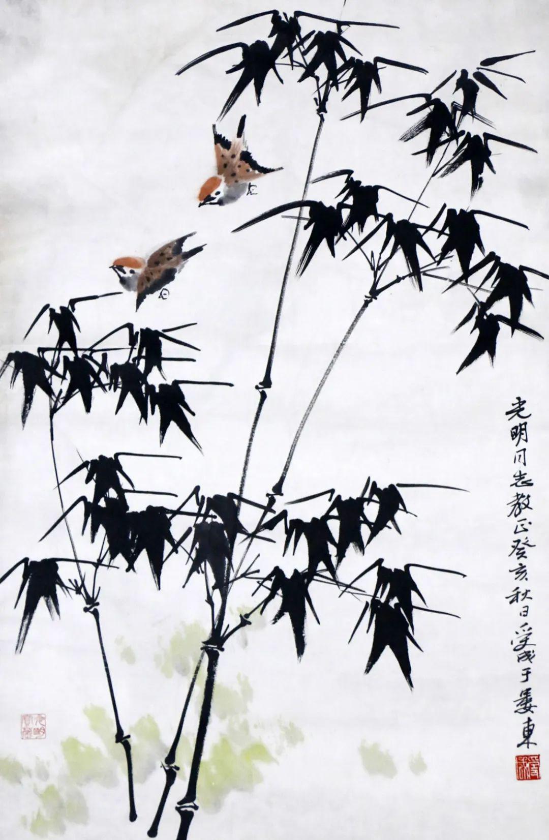 邱受成 竹雀 68×45 设色纸本 立轴