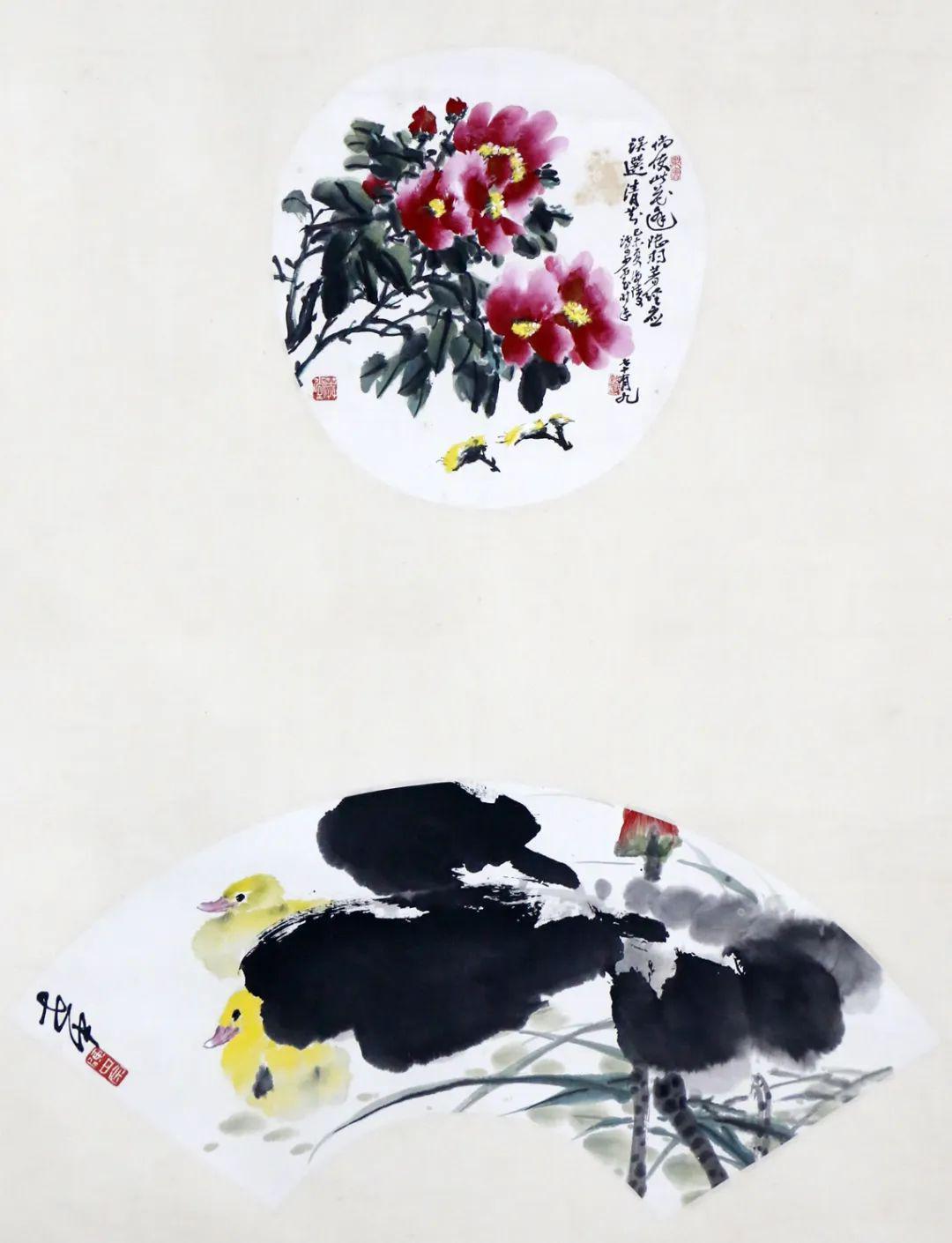 谭少云 花卉、雏鸭 25X24 18.5X51.5 设色纸本 立轴