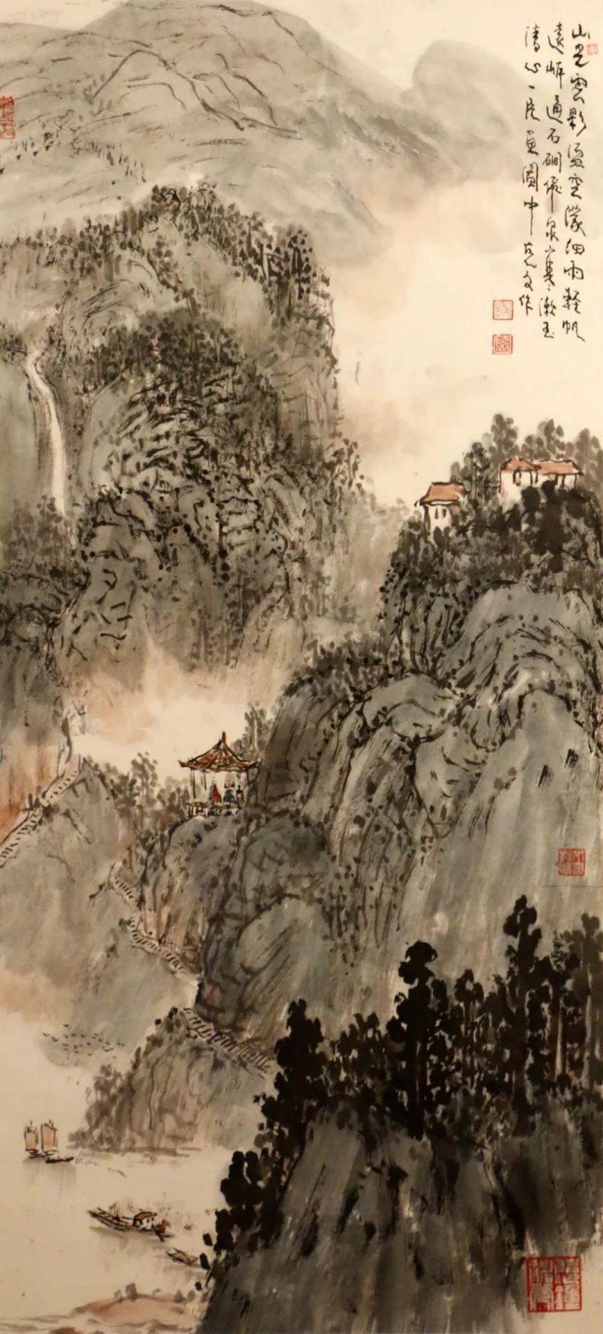 邱陶峰 山高水长 68×46 设色纸本 立轴