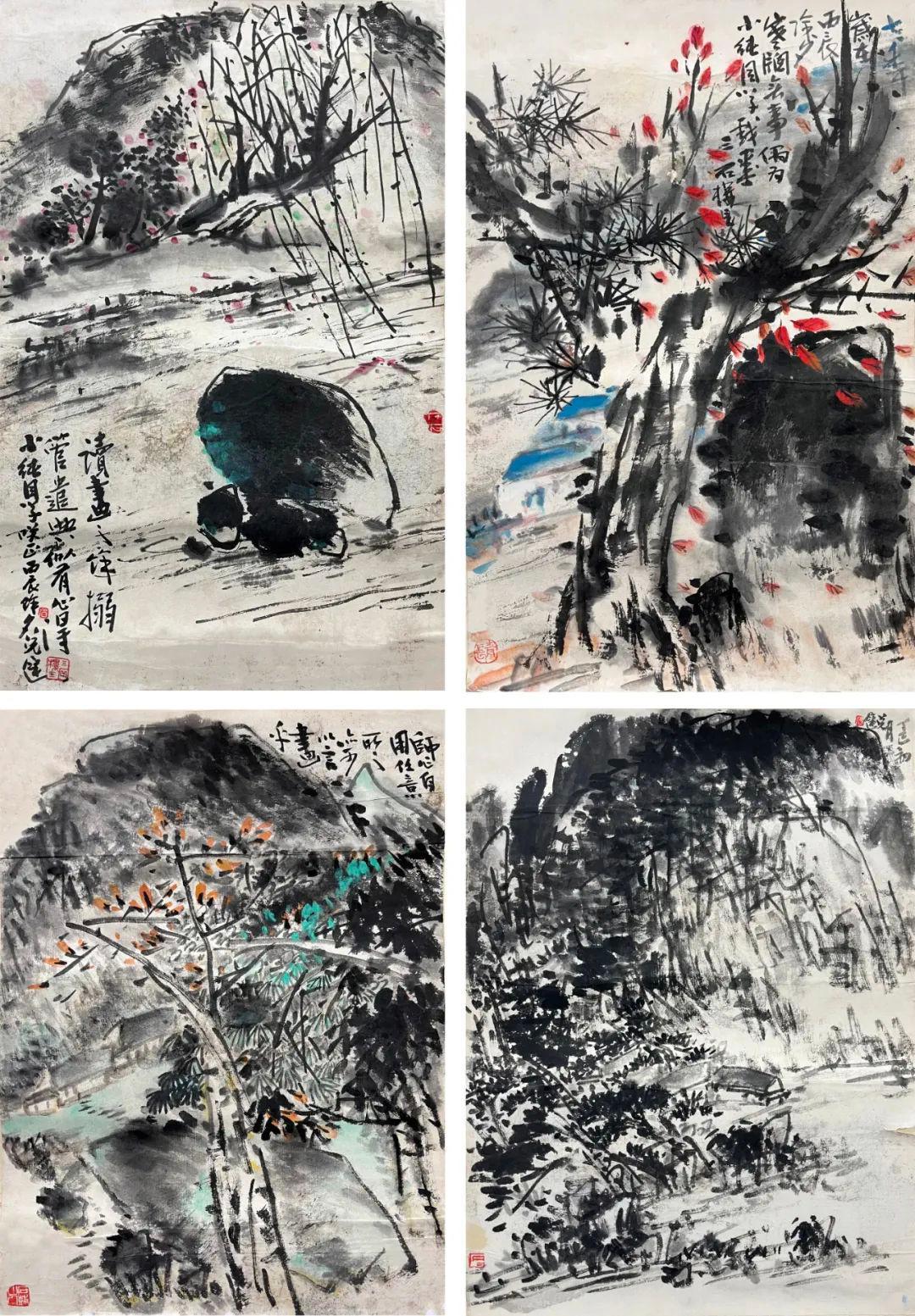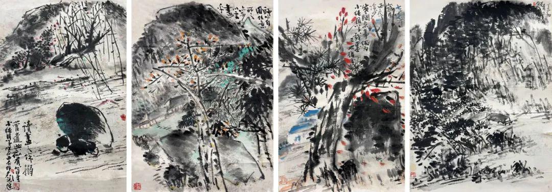 注:藏家直接得自上款人。此作为画家1977年春节前后所作四季山水四景,笔墨酣畅,尤为难得。