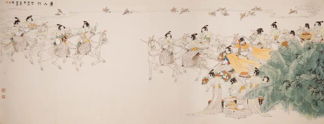 款识:丽人行。杜工部诗意,永嘉振瓯制。