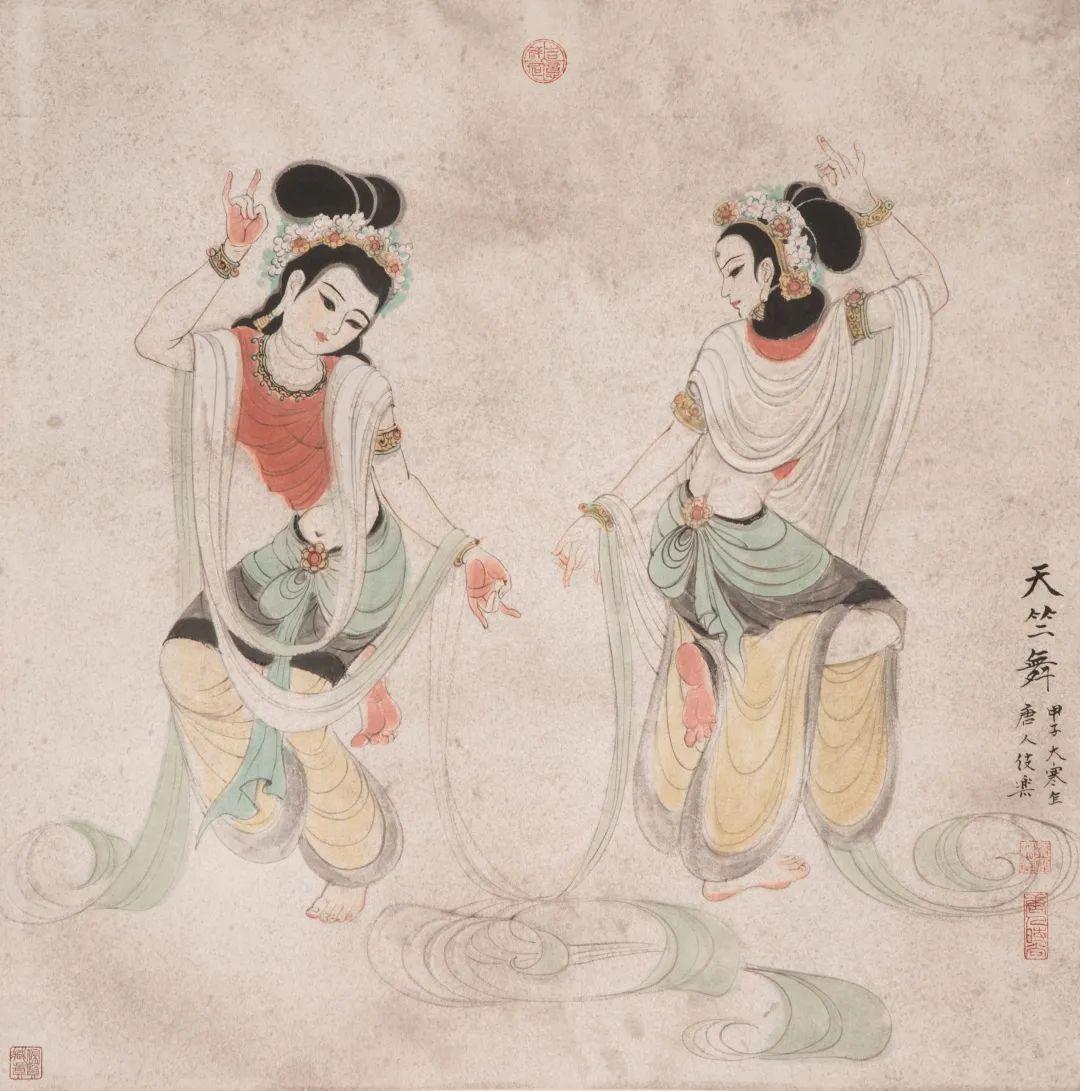 款识:天竺舞。甲子大寒作唐人伎乐。