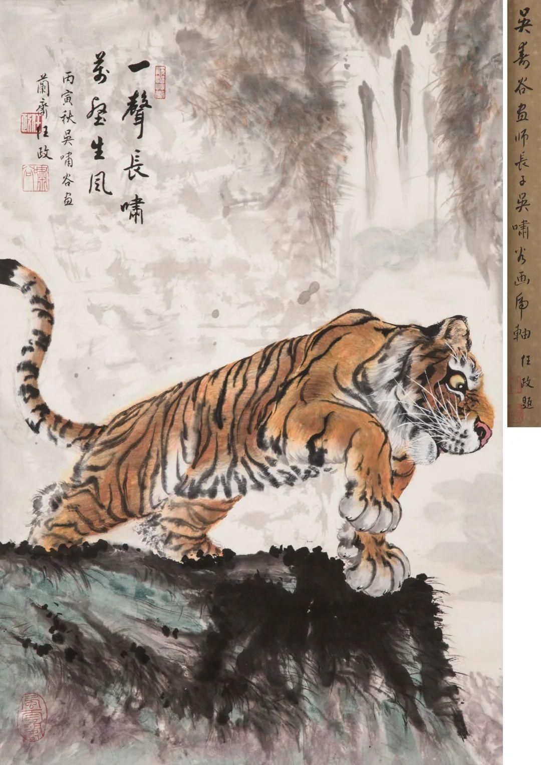 题签:吴寿谷画师长子吴啸谷画虎轴,任政题。