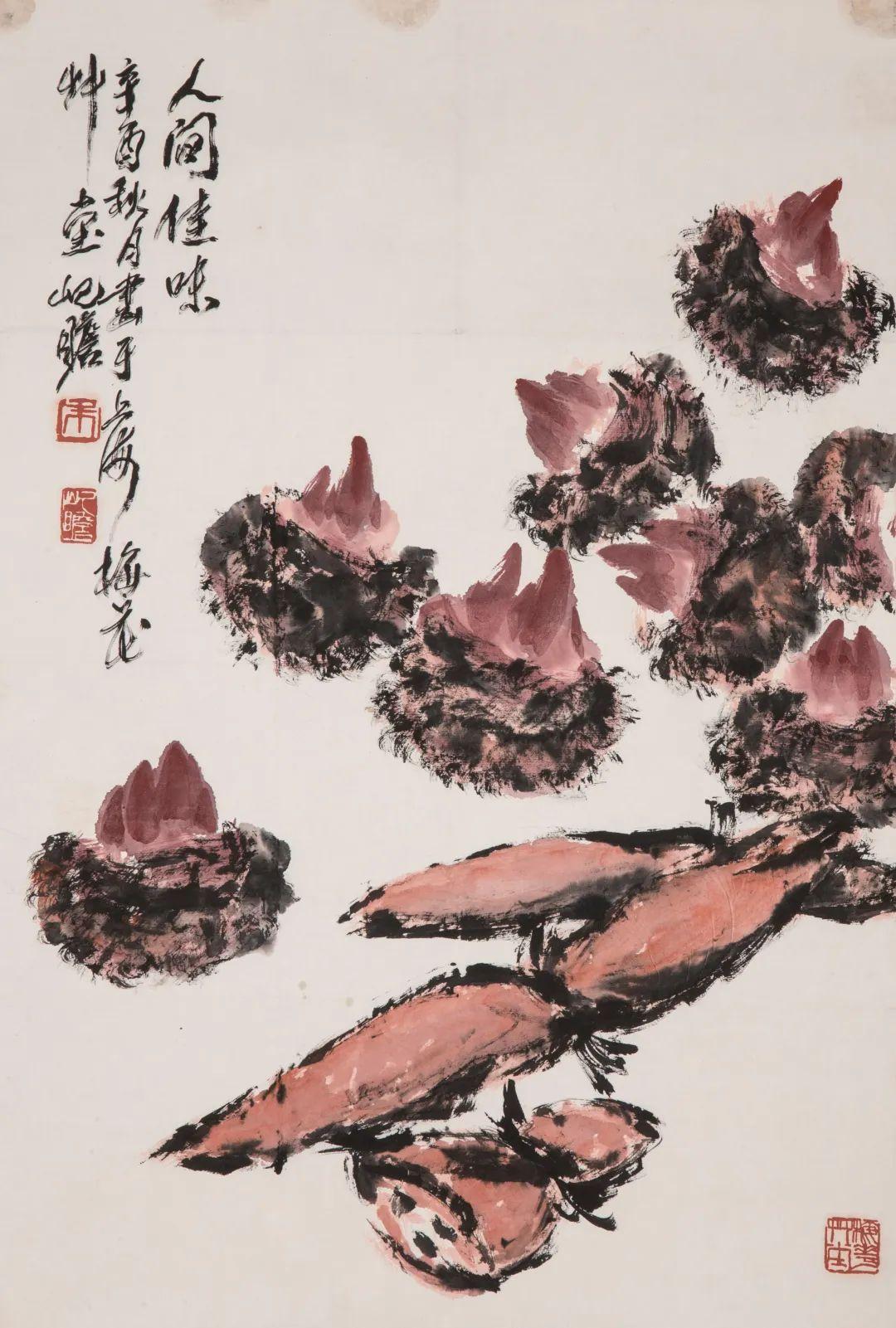 款识:人间佳味。辛酉秋月画于上海梅花草堂,屺瞻。