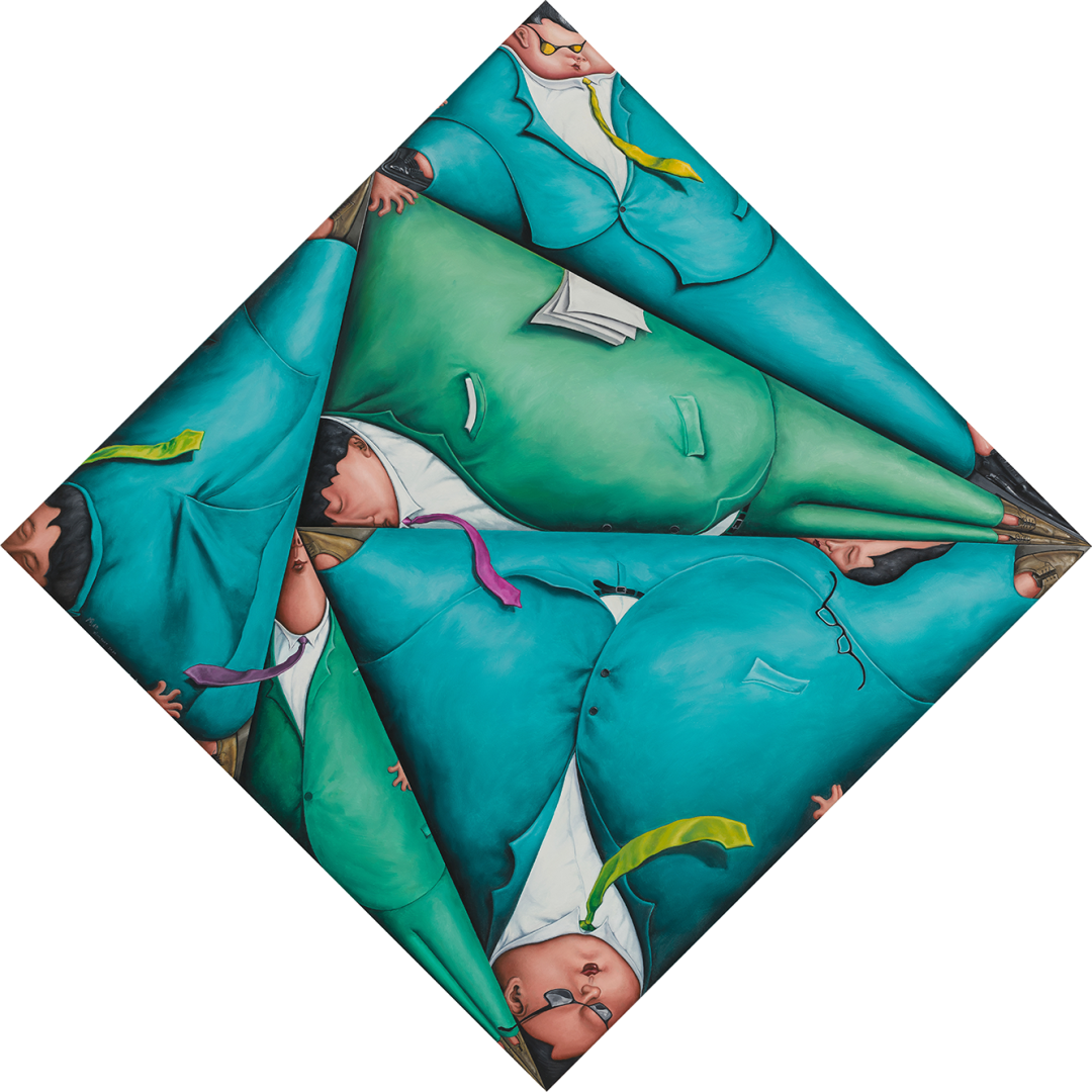 乍看《膨胀》系列会让我们想起儿时玩过的哈哈镜,但如若细品,你的内心就会萌发出深深的不安,这样一种不陌生的变形处理却透露着不寻常的怪诞。周松本人表示,这个系列的创作是为了还原人类疯狂扩张自我欲望的过程,呈现人类中心主义所带来的恶果。“人类视自己为宇宙‘中心’,然而人类自身,包括创造本身的存在,必然是自然和宇宙演进过程的一部分。我们身处创造与被创造之中,我们是造物主与被造物的一体两面。”周松在一次采访中如是说道。