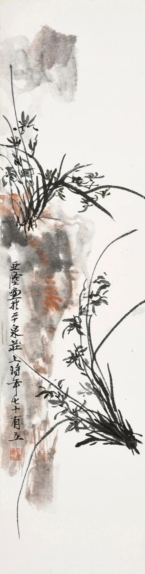“掇英——中国书画”专场呈现近当代名家书画十余件,花鸟、山水、人物、书法,题材丰富,毫端万象而见趣味。汪亚尘《兰石图》写两丛兰花望而呼应,写兰之风骨,用笔劲健有力,淡墨浅赭写石,润而生韵;陈佩秋《鱼乐图》《花蝶图》《行书杜牧诗》、宋玉麟《红梅图》、刘懋善《写生小景》、孙其峰《书法》、米闹《董其昌论书四则》等,诸作纷呈,是为“掇英”读画之趣。