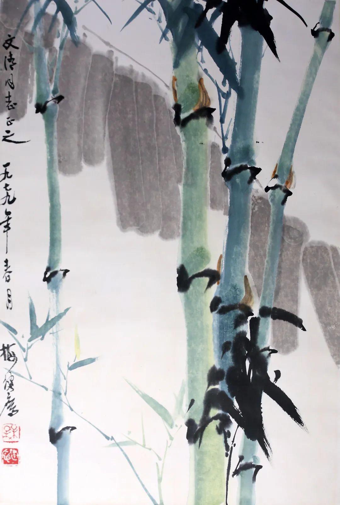 lot5 梅健鹰 翠竹听风图