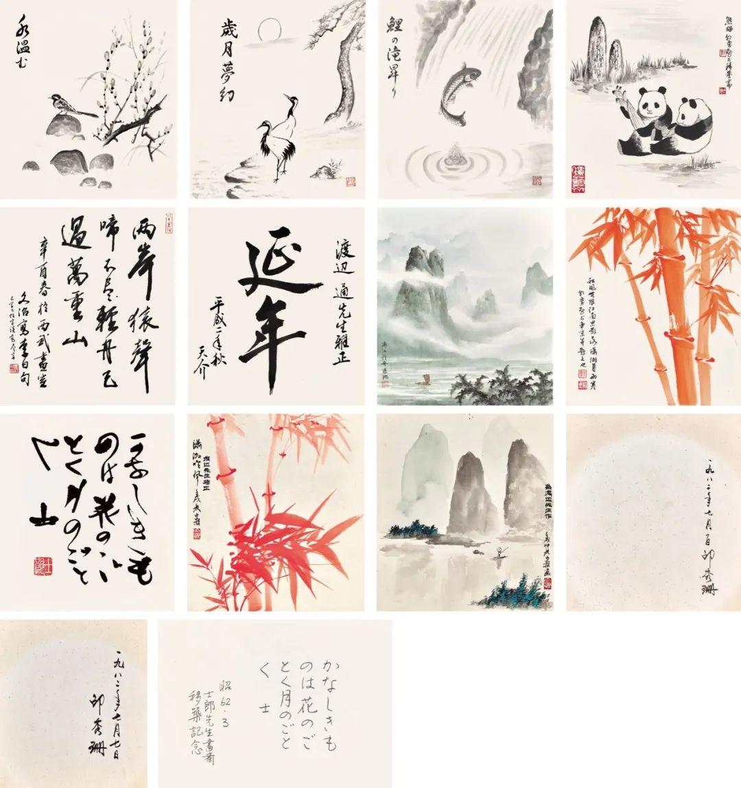 水墨纸本×6枚设色纸本×4枚设色绢本×1枚镜心