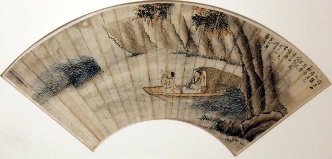 吴伯声 赏月图 16.5×46.5 设色纸本 镜框/扇片