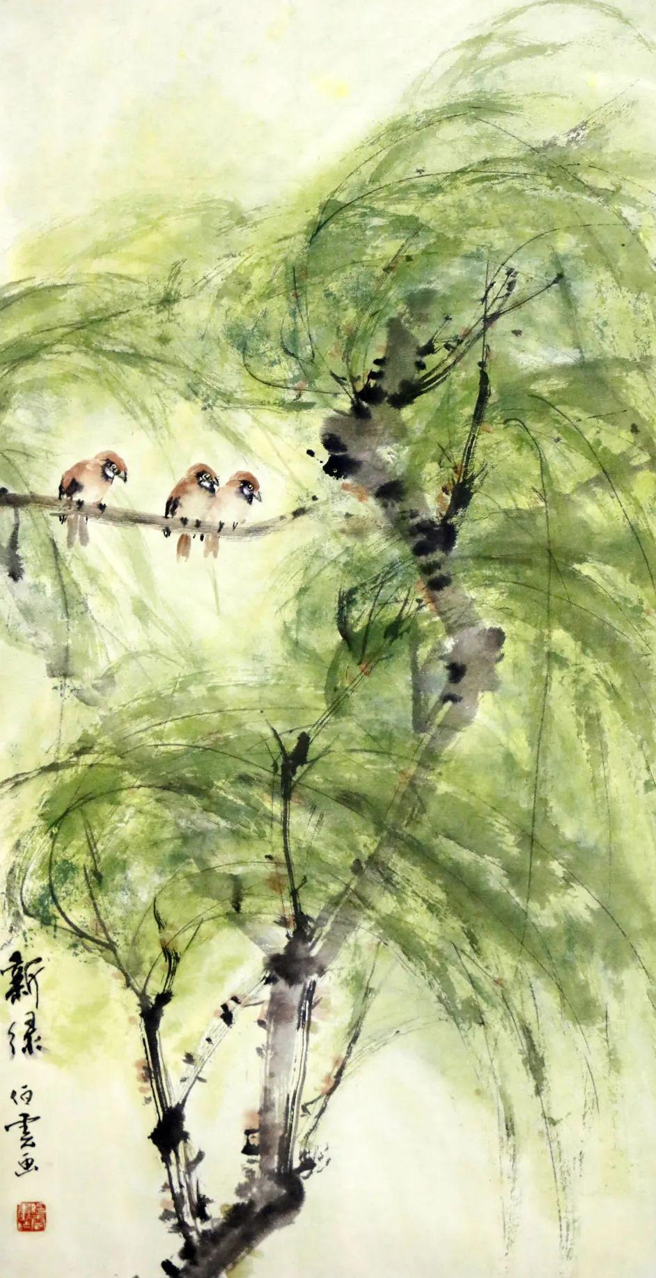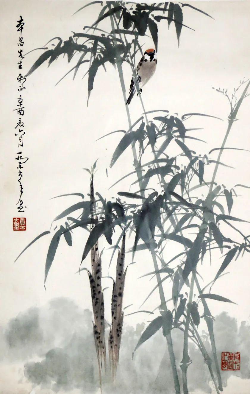 乔木 翠竹小鸟 68×44 设色纸本 镜片