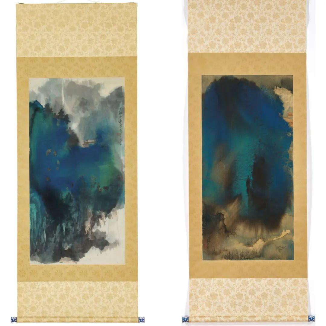 左图为本作《山寺飞泉》;右图为《碧峰古寺》(于2021年佳士得香港春季拍卖 “二十及二十一世纪艺术晚间拍卖中” 以2亿910万港元成交)