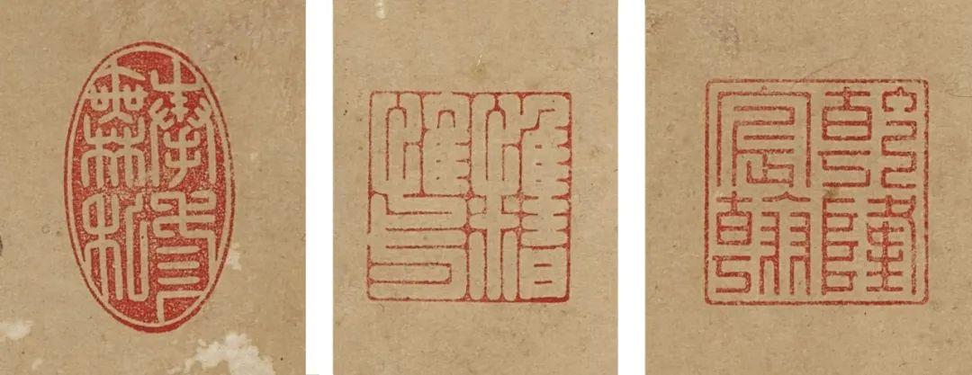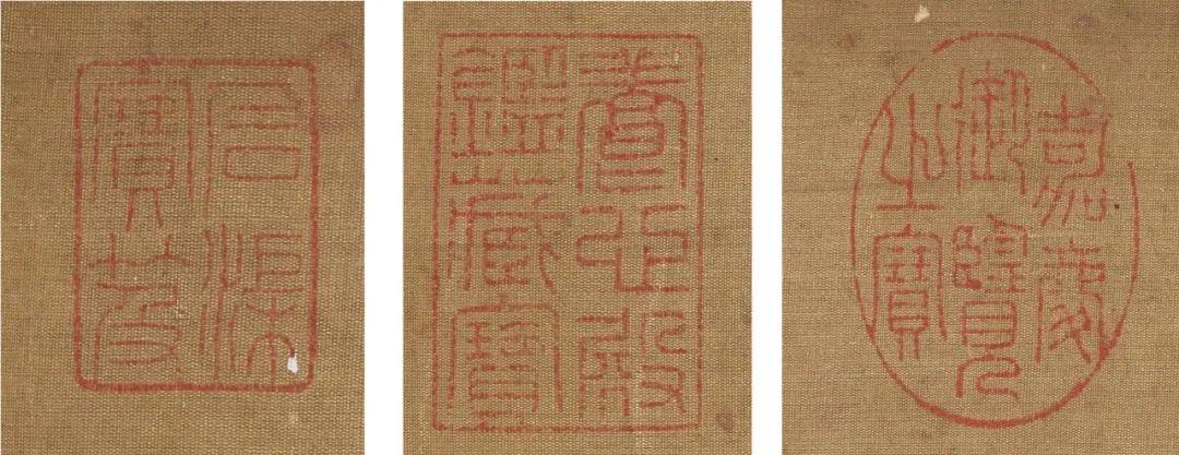 本幅收录于《石渠宝笈初编》,经乾隆及嘉庆鉴赏,上有钤有「乾隆御览之宝」、「石渠宝笈」、「养心殿鉴藏宝」三玺及「嘉庆御览之宝」。在画作右下方另有「乐善堂图书记」印,乐善堂仍乾隆年轻时之书房,初设在圆明园桃花坞中,后雍正即位,乾隆随父皇迁居紫禁城内的西二所,当中第一重殿崇敬殿内,即为弘历读书写作之处「乐善堂」,此意味着,本作品完成后,很早便收到乾隆手中,亦为聂崇正先生推论之佐证。